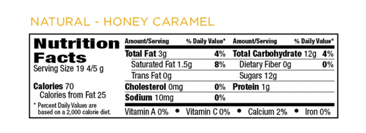 All-natural milk chocolate filled with sweet honey and caramel. Each mini bar is perfect for a little something sweet! 34% Cocoa Made with wonderful ingredients like cream, honey, and brown sugar