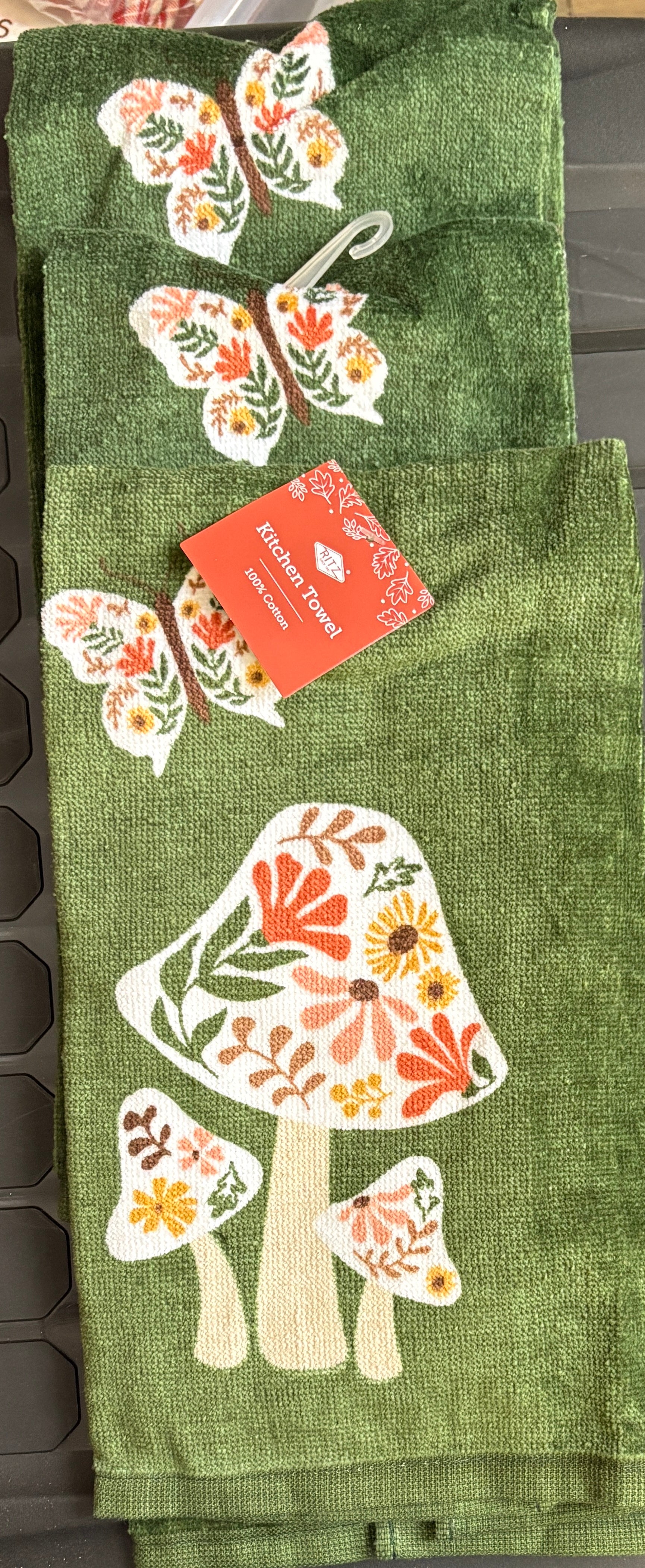 Updated- Mushrooms (Green) Kitchen Towel- $6 or 10/$50 (Mix & Match)